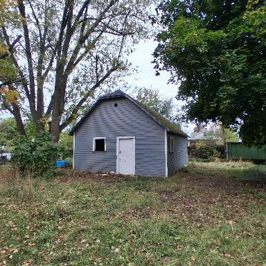Auction property. Home is Sold AS IS. 2 bedroom 1 bathroom home with full unfinished basement. Enclosed front porch, detached 1 stall garage. |
